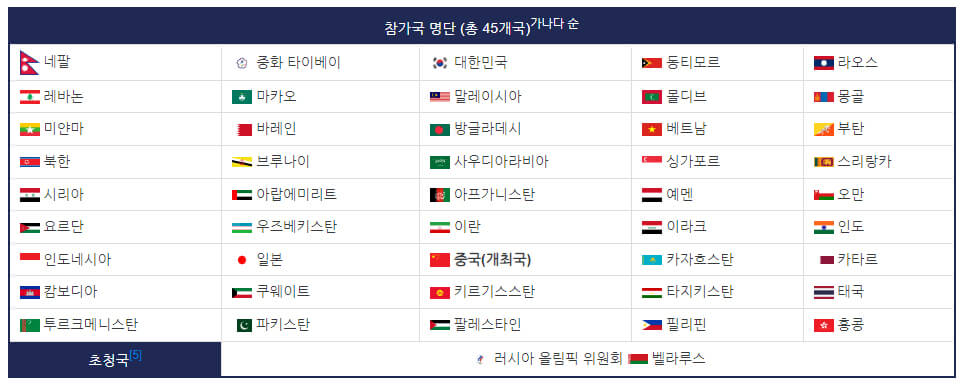 * 러시아의 우크라이나 침공으로 IOC에서 퇴출당한 러시아와 벨라루스가 이번 게임에 중립국 자격으로 참가합니다.